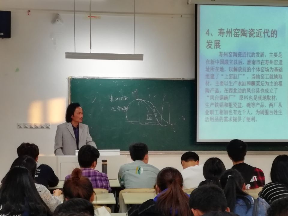 报告中,朱兆龙从寿州窑陶瓷的主要特征,在古代的兴起、发展、衰落和近代的发展等方面,论述了寿州窑陶瓷传承与发展的演进脉络,给大学生们带来了一场学术盛宴。朱兆龙深入浅出,语言幽默,讲到精彩之处,大家报以热烈的掌声。