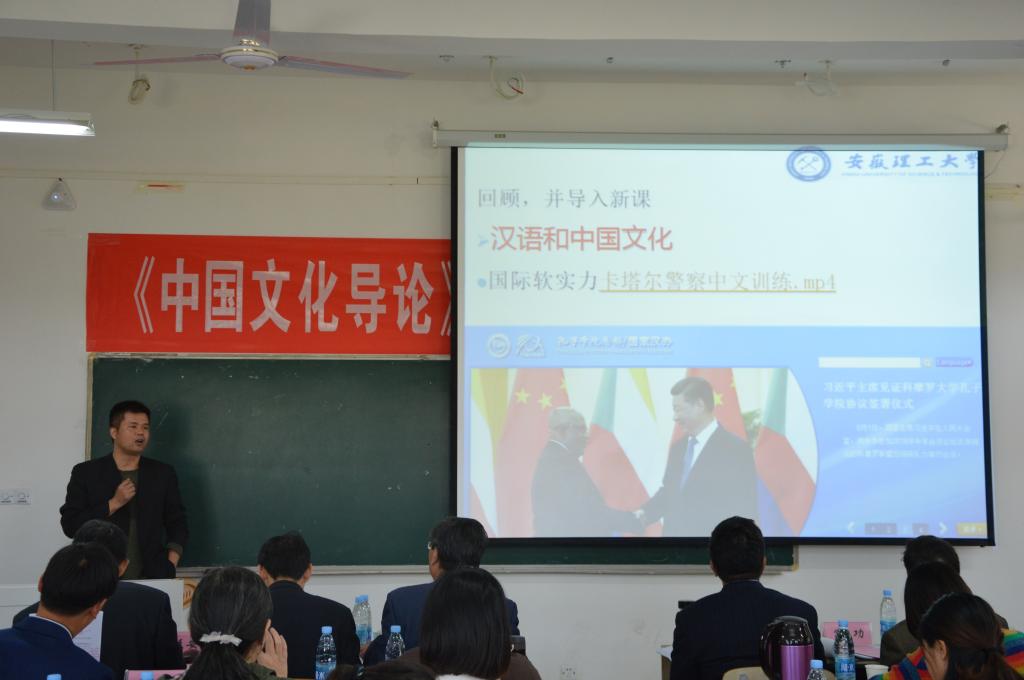 为弘扬优秀传统文化,推进课程思政建设,10月31日上午,香蕉网 在崇智楼A333教室和A321会议室分别举行了《中国文化导论》课程思政观摩教学暨专家研讨会,副校长董雨、淮南市社科联主席张松、淮南师范学院马克思主义学院院长吴玉才、教务处处长黄友锐、马克思主义学院院长孙功、党委宣传部副部长董淑平及香蕉网 党政领导等观摩了示范教学并参加研讨会。