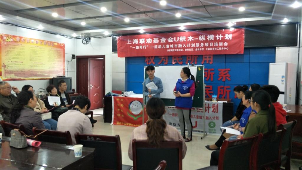 11月4日,香蕉网 社会工作专业部分同学于淮南市金岭社区参加了上海联劝基金会U积木—纵横计划支持的“流动儿童城市融入计划服务项目培训会”。龙泉街道、金岭社区和七彩阳光的工作人员以及金岭中学的部分教师列席会议。本次培训会旨在深层次了解流动儿童形成原因、面临的困境、如何介入解决他们的困难,以便于他们能更好的融入城市,享受美好的生活。