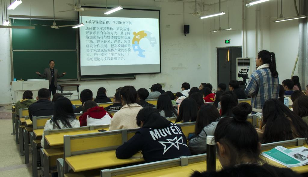 承担网络与新媒体专业课程教学任务的钱元、王偲等老师和近200名同学参加了此次报告会。
