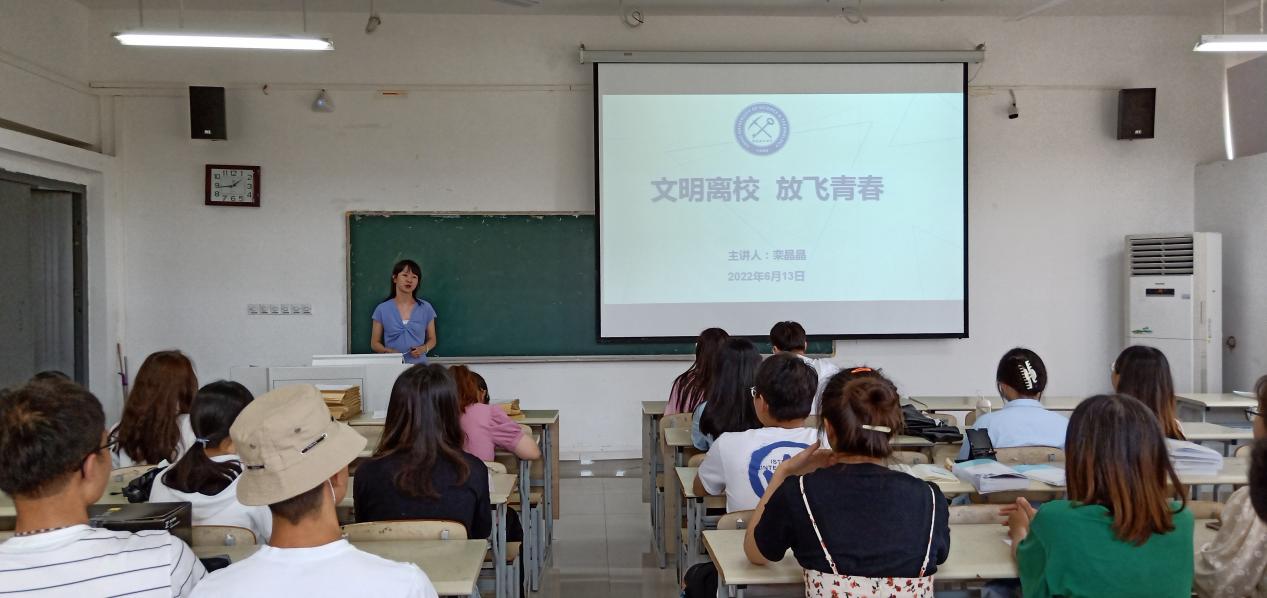 学院针对2022届毕业生召开“文明离校 放飞青春”年级大会,毕业班辅导员祝贺全体同学顺利毕业,与同学们共叙母校之情,开展文明离校宣讲,希望同学们展现出安理毕业生的良好精神风貌,切实做好了毕业生日常行为规范的引导和教育。