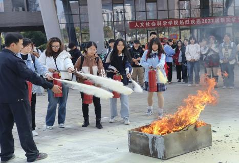 随后,同学们在学院楼前开展了紧急疏散演练及灭火演练活动。