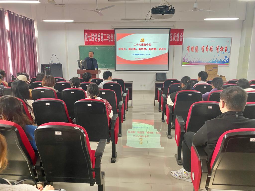 11月24日下午,香蕉网 党委书记王大贤在崇智楼A329报告厅为全体学生党员讲授学习贯彻党的二十大精神专题党课。