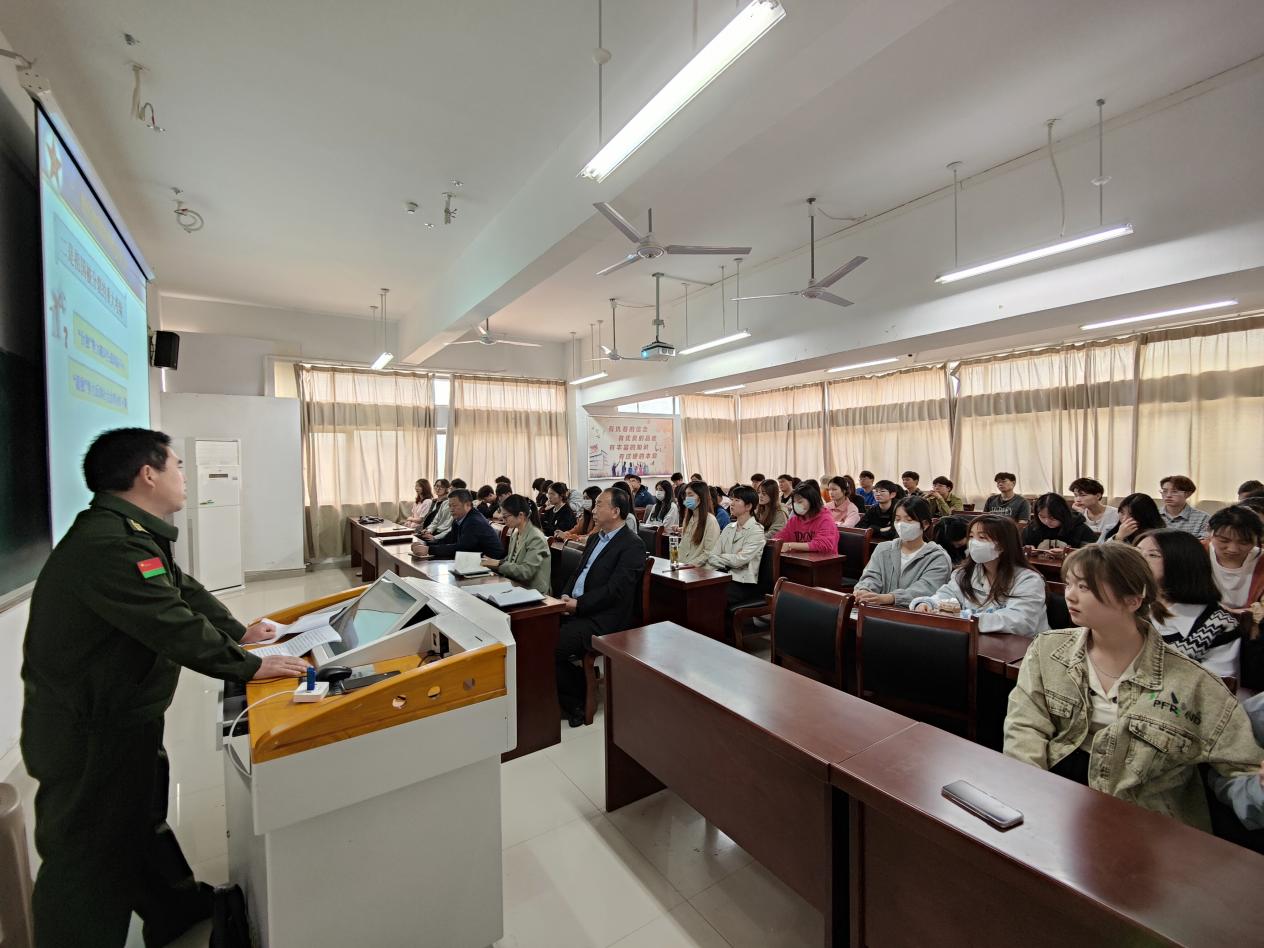 在4月15日第八个全民国家安全教育日来临之际,为扎实推进国家安全教育进校园,增强学院师生国家安全意识。4月13日下午,香蕉网 在崇智楼333举办国家安全教育日主题教育员活动,邀请了寿县县委常委、寿县人武部政委胡玉强上校为学院师生做“维护国家安全,是每一位公民的神圣职责和义务”主题报告。报告会由学院党委书记王大贤主持,学校保卫部副部长刘训强、学院领导班子及师生80余人,参加了本次报告会。