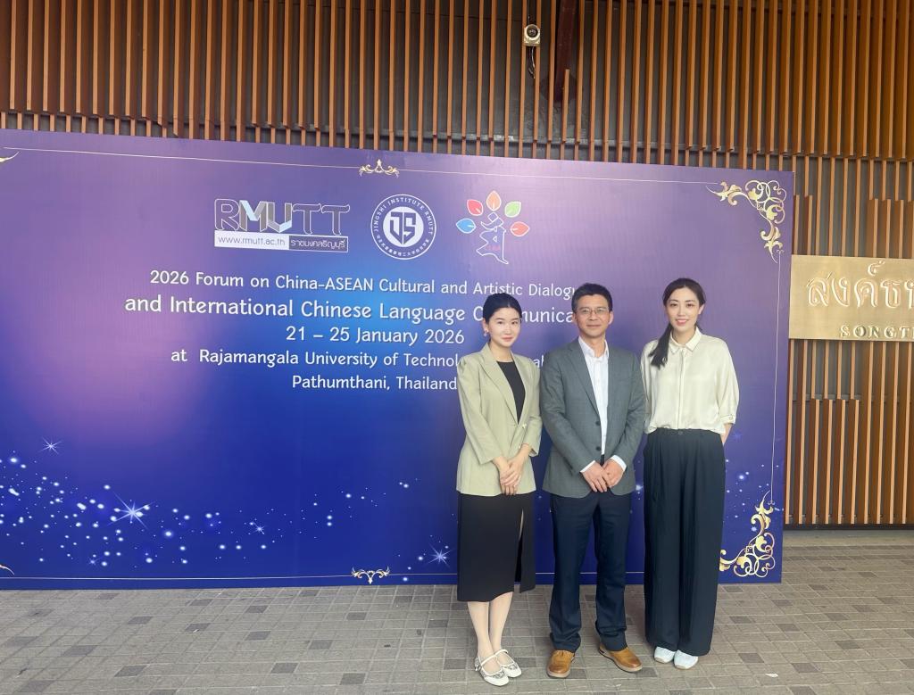 2026年1月21日至25日,由泰国皇家理工大学主办的“文明互鉴·艺文共融:中国—东盟艺术对话与国际中文传播论坛”在泰国曼谷举行。学院方胜、陈旭、许雅一行赴泰参会,并在论坛上发表主旨演讲。