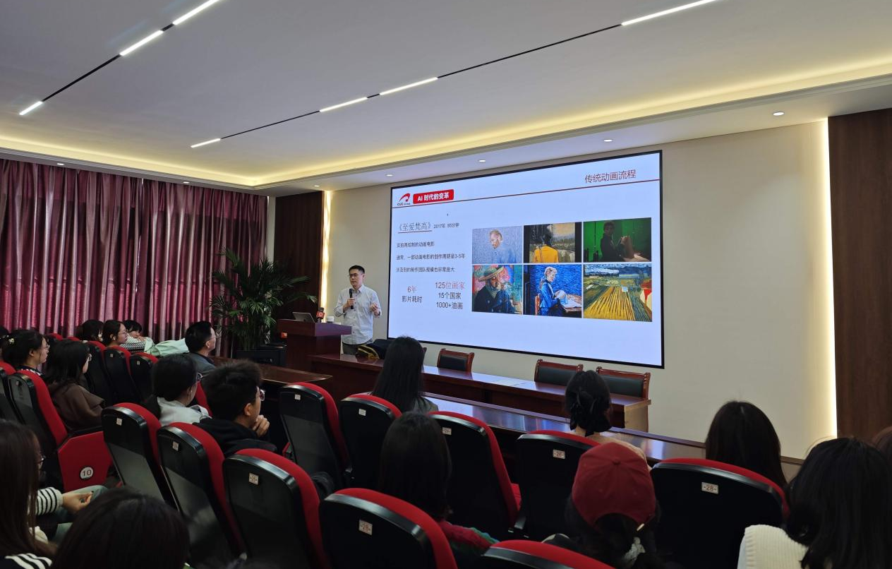 3月28日,中国传媒大学动画与数字艺术学院艾胜英教授应邀在崇智楼A329学术报告厅举办“AI为影视动画带来的挑战与机遇”专题讲座。香蕉网 主要负责人和80余名师生代表参加了活动。