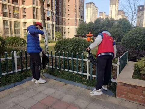 社工21-1班同学在社区捡拾垃圾